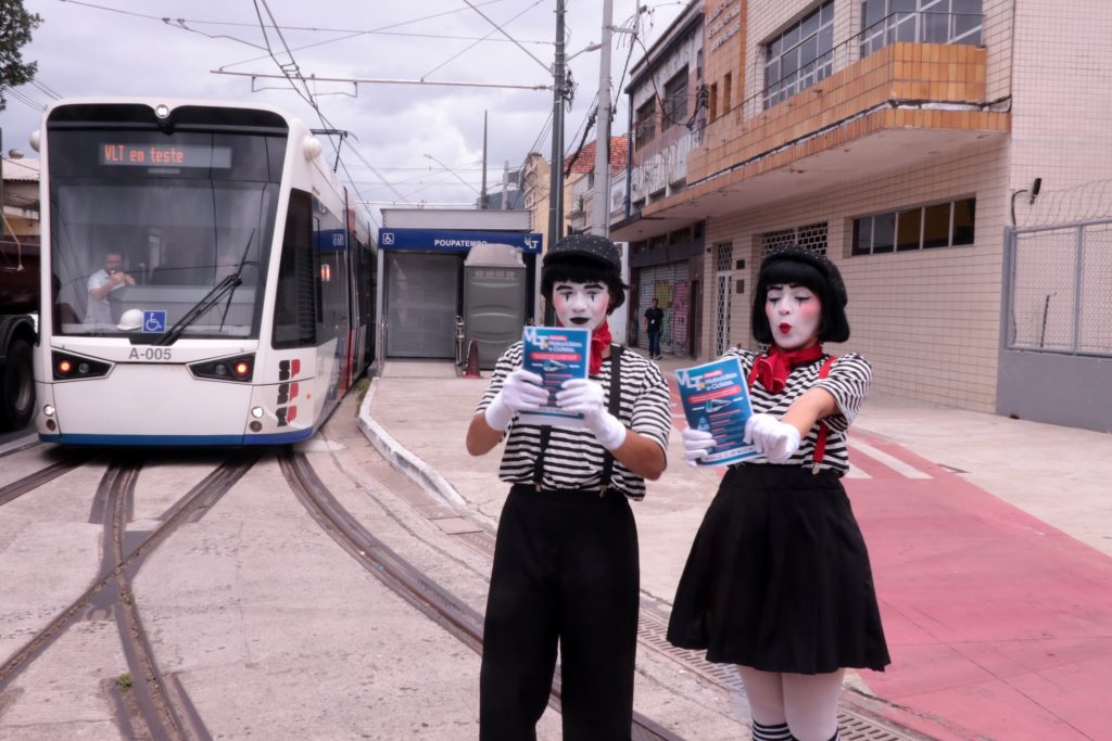 Com a proximidade do início das operações e o avanço na instalação dos sistemas que compõem o novo trecho do Veículo Leve sobre Trilhos (VLT), uma ação inusitada chama a atenção de quem passa pela região entre a Conselheiro Nébias e o Valongo, em Santos. Nesta sexta-feira (28), de 12h às 14h, um grupo de mímicos realizará intervenções educativas focadas na segurança viária. O objetivo é preparar a população para a nova dinâmica urbana, alertando pedestres, motociclistas, ciclistas e motoristas sobre a importância do respeito à sinalização e à divisão correta do espaço público.