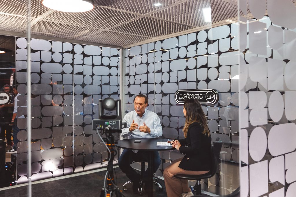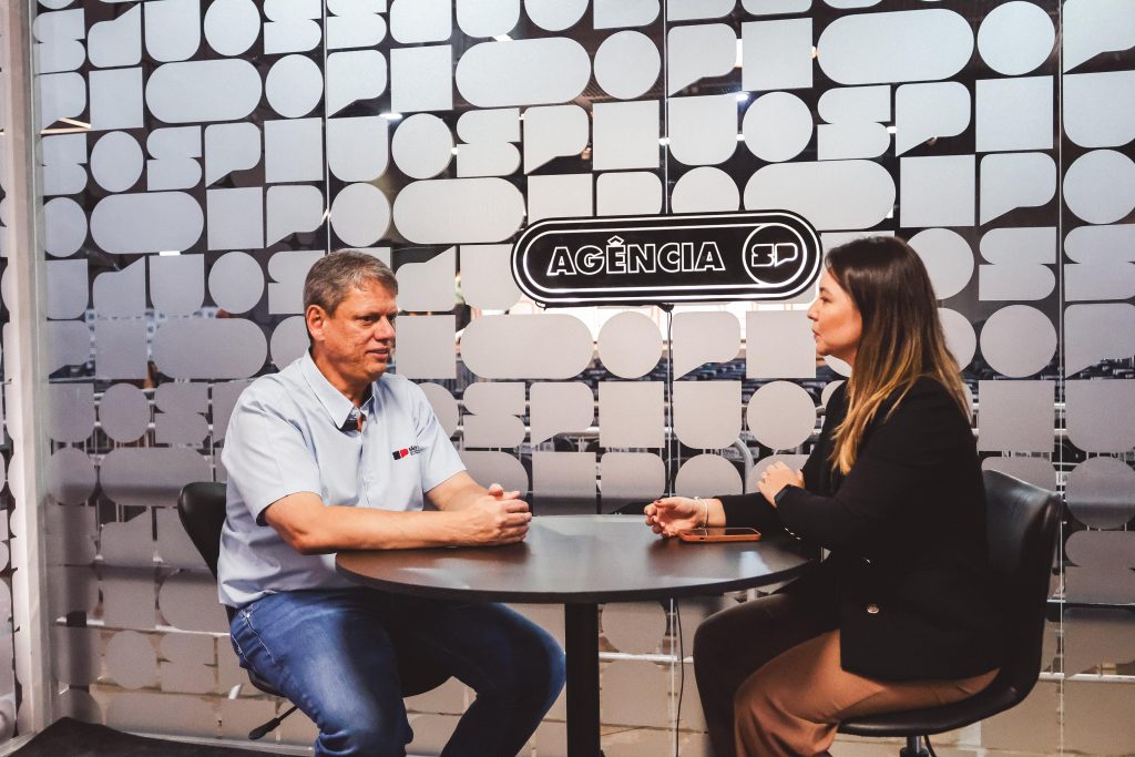 Após o encerramento do evento, o governador Tarcísio de Freitas concede entrevista no estúdio da Agência SP.