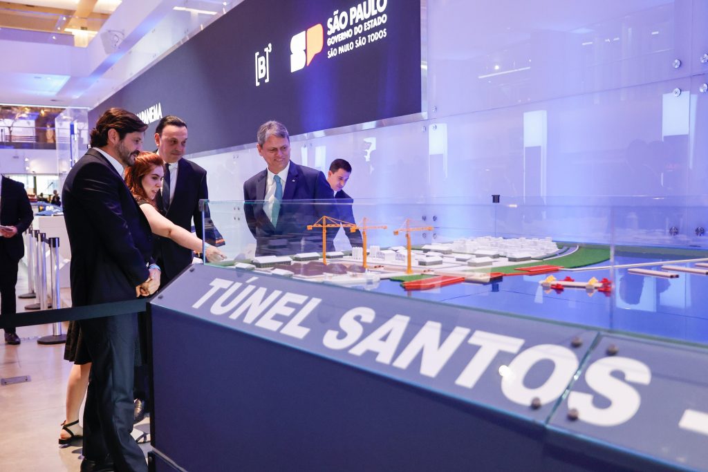 Mais tarde, ás 16h, o Governo de São Paulo realiza também o leilão do Túnel Santos-Guarujá, projeto aguardado há décadas pela população do litoral. Uma maquete na Bolsa mostra como será a obra.