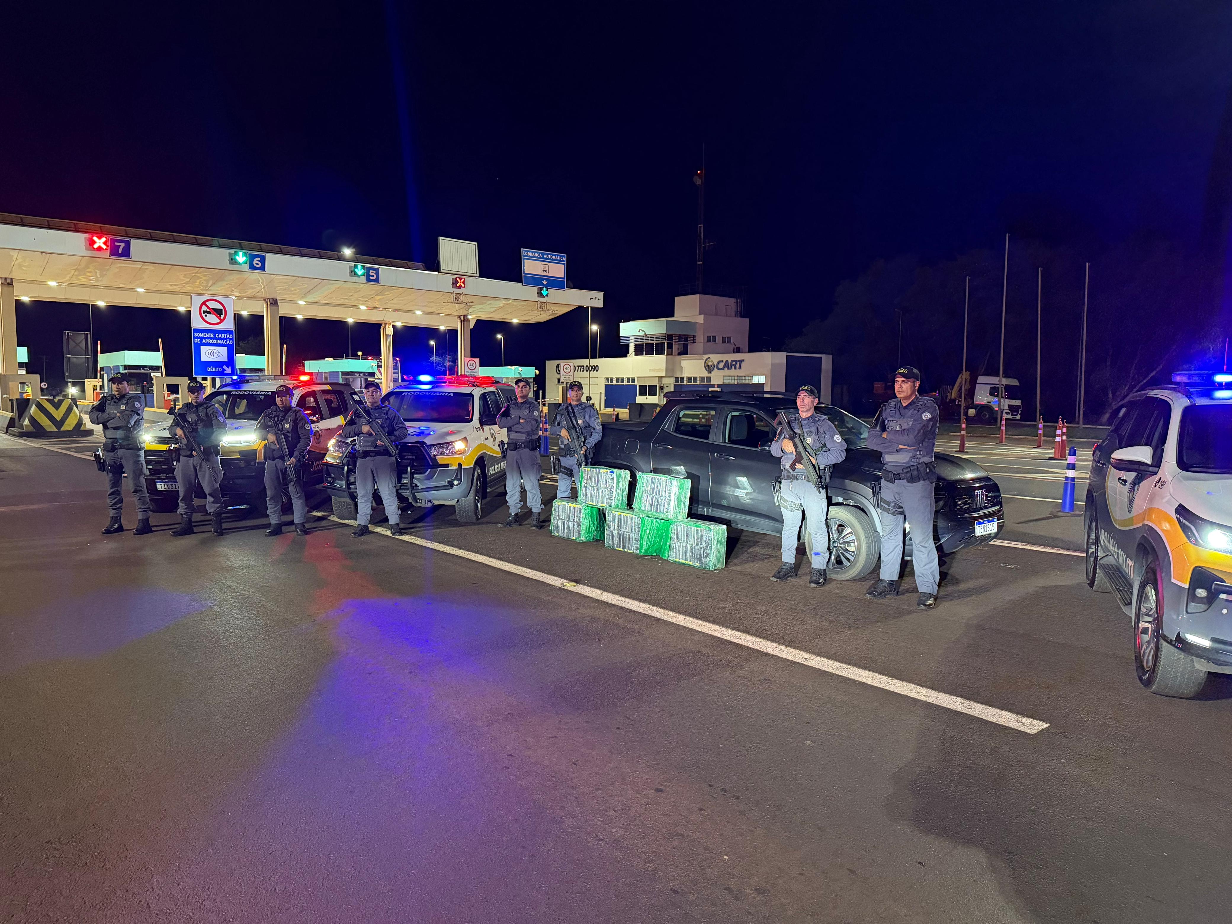 Uma equipe do 2° Batalhão de Polícia Militar Rodoviária realizava fiscalização na região quando abordou o veículo. Foram encontrados cinco fardos com 250 tijolos da droga.