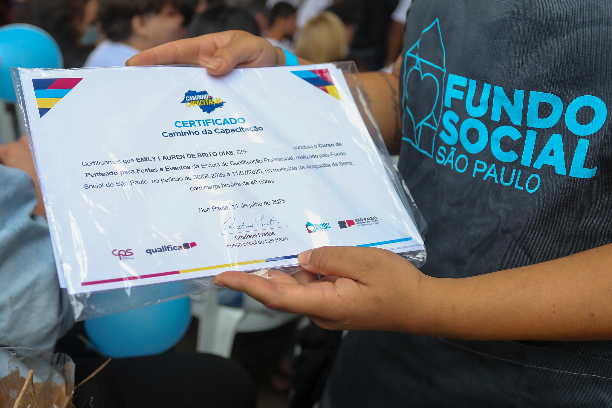 A primeira-dama e presidente do Fundo Social de São Paulo, Cristiane Freitas, destacou a importância da qualificação como ferramenta de transformação social. “A cada formatura, vemos histórias de superação e de esperança. O Caminho da Capacitação abre portas para o mercado de trabalho e para o empreendedorismo, gerando renda e autonomia para milhares de pessoas e famílias paulistas”, afirmou.