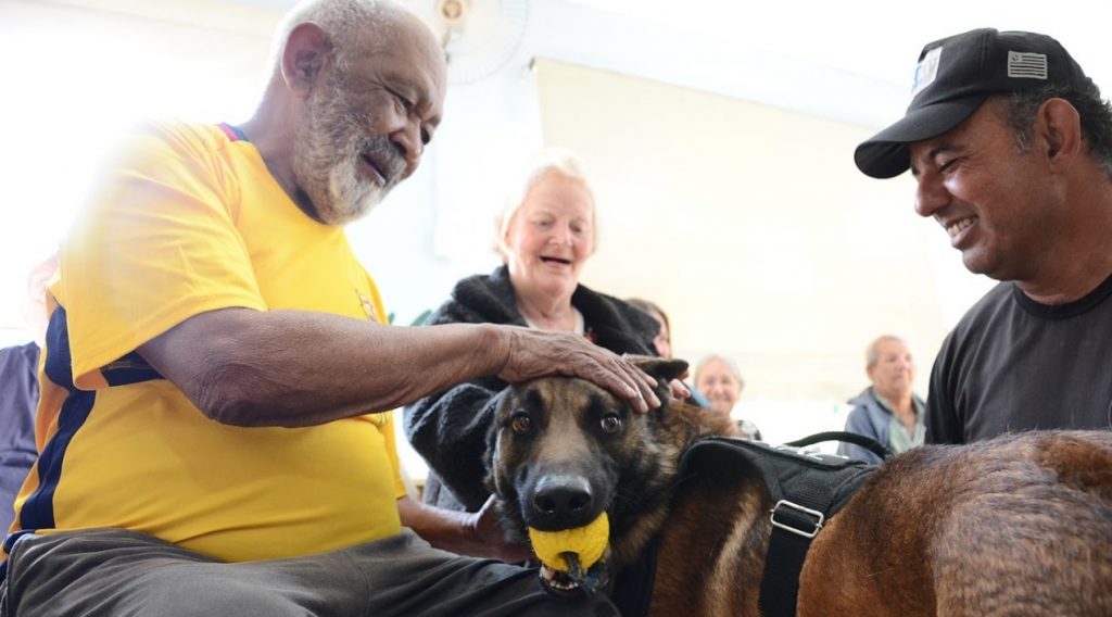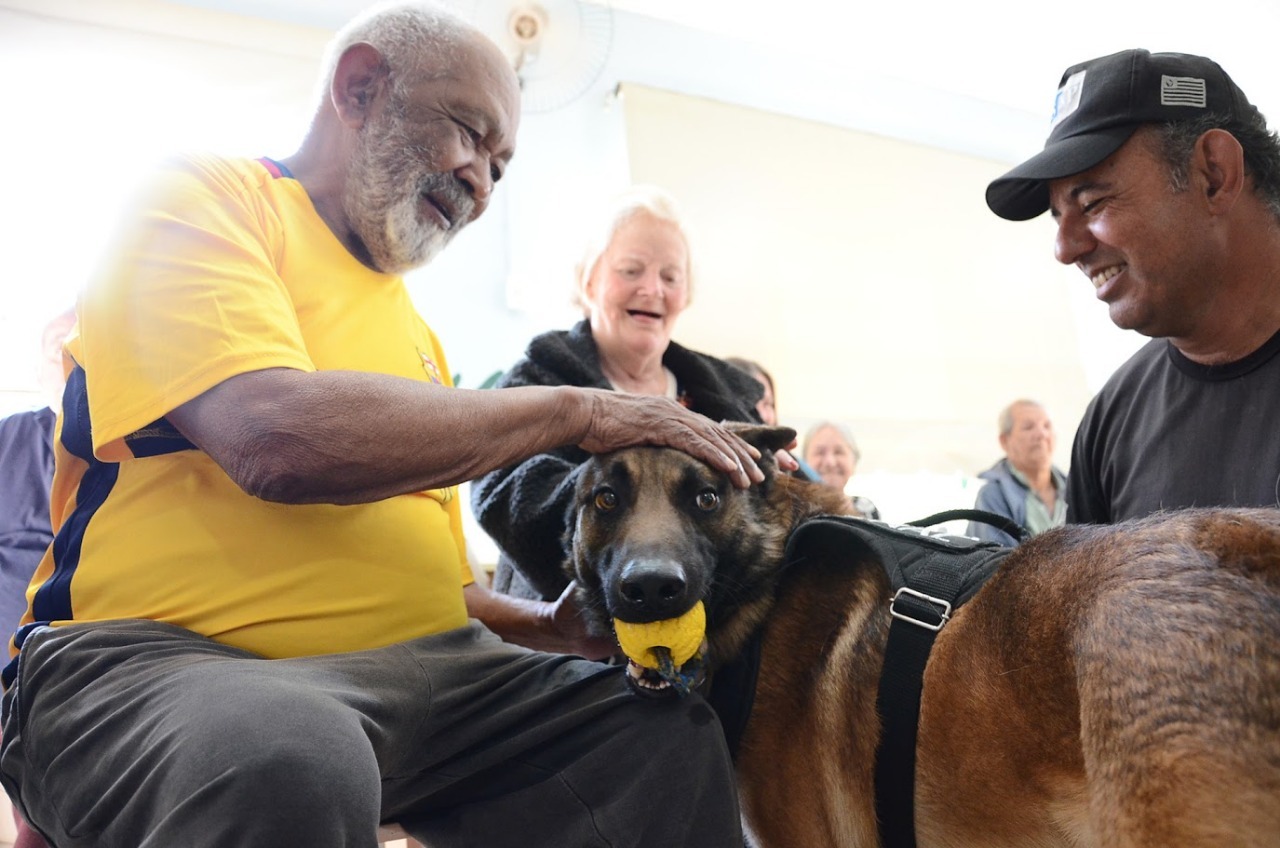 O cão Logan Junior, um Pastor Belga Malinois, foi recebido com entusiasmo pelos velhinhos, que puderam interagir com o animal, sob supervisão dos cinotécnicos do Canil. “Foi um dia especial em que nossos acolhidos puderam lembrar dos bichinhos que eles tinham antes de chegarem aqui. Ver o sorriso no rosto de cada um deles não tem preço”, afirma a Assistente Social da instituição, Viviane Pereira.