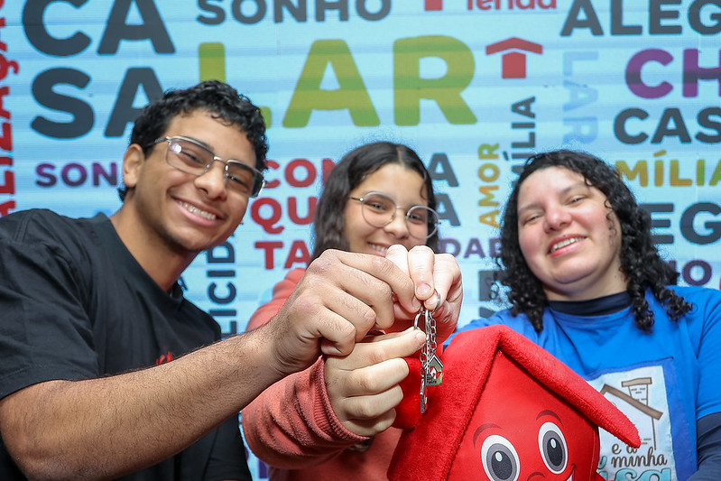 A auxiliar de laboratório Francirose dos Santos, de 38 anos, recebeu as chaves do novo lar ao lado dos filhos Lucas dos Santos, de 17 anos, e Letícia dos Santos, de 13. Como mãe solo, ela reconheceu a importância da casa própria e comemorou a conquista. “É um sentimento maravilhoso, porque eu sei que foi uma preparação de Deus. Eu queria muito ter a minha casa própria, juntamente com meus filhos. Como eu sou mãe solteira, é muito difícil você conseguir e hoje estou aqui”, relatou.