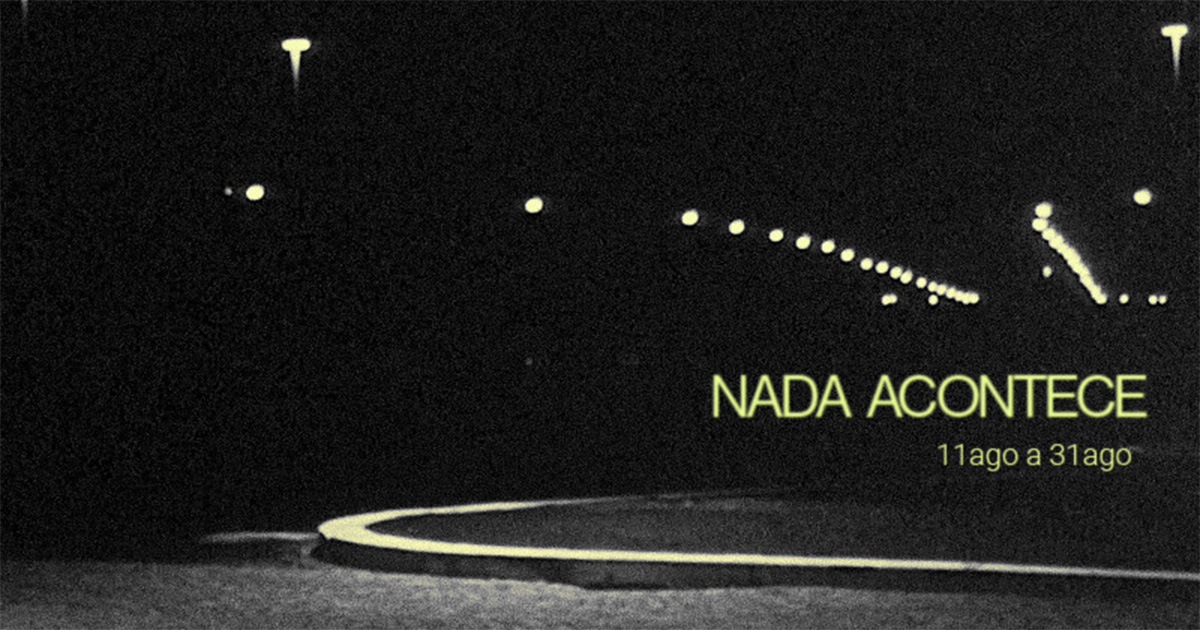 A mostra Nada Acontece, do Cinema da USP Paulo Emilio (Cinusp), está em cartaz até 31 de agosto, em sessões às 16h, 18h e 19h, nas salas do Cinusp instaladas no Centro Cultural Camargo Guarnieri da USP (Rua do Anfiteatro, 109, Cidade Universitária, São Paulo) e no Centro MariAntonia da USP (Rua Maria Antonia, 258, Vila Buarque, região central de São Paulo, próximo às estações Higienópolis-Mackenzie e Santa Cecília do metrô). Entrada grátis. A programação completa da mostra e mais informações estão disponíveis no site do Cinusp.