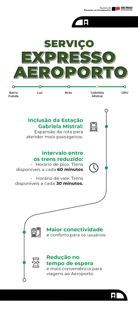 O Serviço Expresso Aeroporto também terá melhorias, com a inclusão da Estação Gabriela Mistral e diminuição do intervalo entre os trens, com viagens a cada 60 min (pico) e 30 min (vale). O leilão do Lote Alto Tietê acontecerá no primeiro trimestre de 2025.