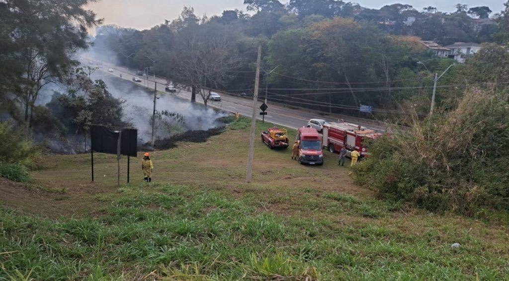 Em Valinhos (foto), incêndio atinge Área de Preservação Permanente (APP). Defesa Civil, Corpo de Bombeiros e equipes de Usinas atuam no combate.