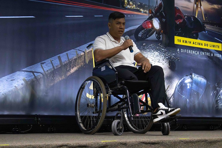 “Na véspera do acidente, parei para ver um jogo com amigos, cheguei em casa tarde e acordei atrasado no dia seguinte. Para compensar, quis acelerar minha moto. Aqueles minutos que eu pensei que estivesse recuperando, eu, na verdade, perdi para o resto da vida.”