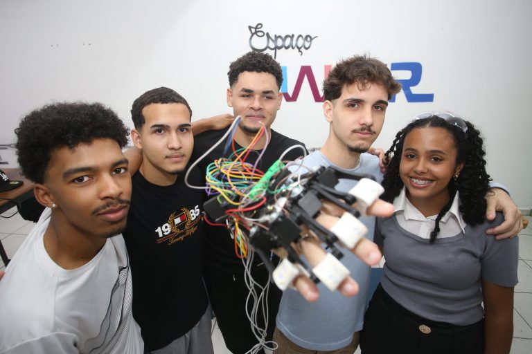 São projetos finalistas um exoesqueleto de mão para reabilitação criado nas aulas de robótica e uma tinta sustentável, idealizada a partir de isopor reciclado e óleos essenciais