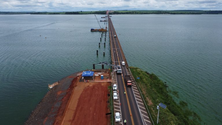 Empreendimento, que atravessa o Rio Tietê e conecta Novo Horizonte e Pongaí, conta com usina de concreto e fábrica de pré-moldados em canteiro de obras