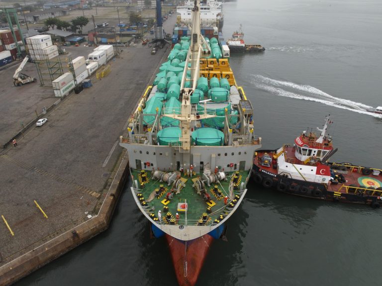 Com a chegada do navio ao Brasil, agora o trem será preparado para o transporte até a capital paulista