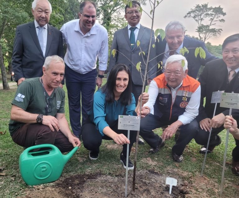 Foram plantadas 145 mudas, entre cerejeiras e espécies nativas da mata atlântica; iniciativa reforça o compromisso internacional com a sustentabilidade ambiental