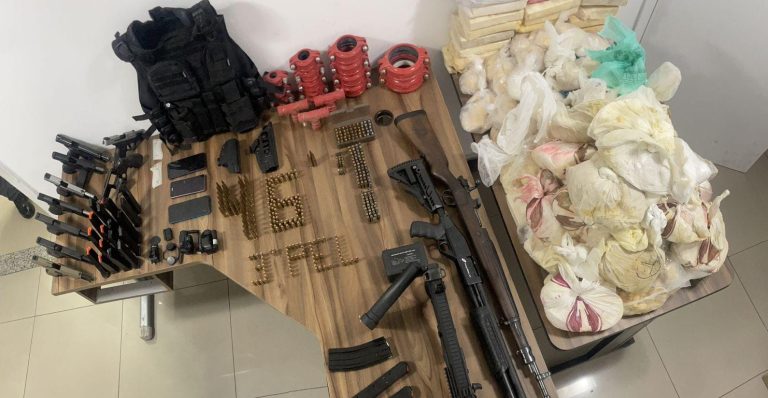 Armas e drogas estavam escondidas em uma ‘casa bomba’; um foragido da Justiça foi preso