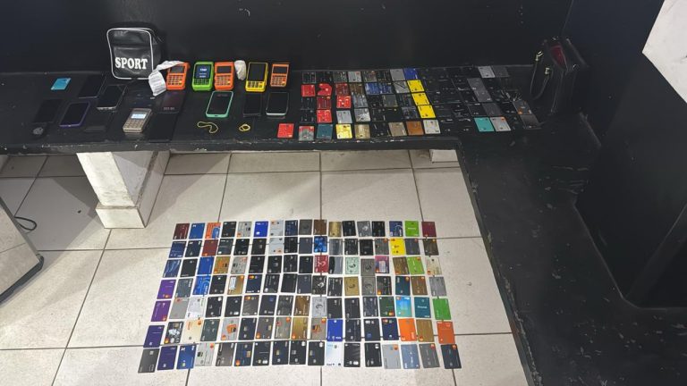 Quatro suspeitos, incluindo um procurado, foram presos após serem flagrados utilizando maquininhas de cartão para clonar dados bancários