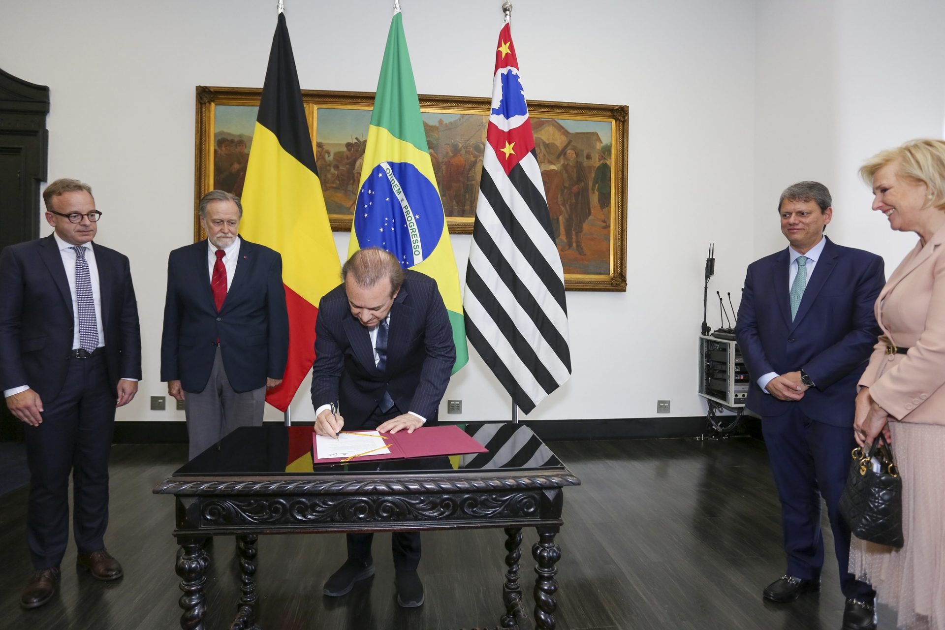 O encontro também contou com a participação do governador Tarcísio de Freitas. Junto a empresários e diplomatas belgas, foram tratadas as temáticas da transição energética e do investimento em energias sustentáveis. “Vamos trabalhar para manter essa excelente relação e esse ambiente de negócios. Temos a presença de empresas de altíssima tecnologia, seja na área do agronegócio, química ou transportes. Vamos preparar o salto que será dado para tornar a nossa produção cada vez mais sustentável”, disse o governador.