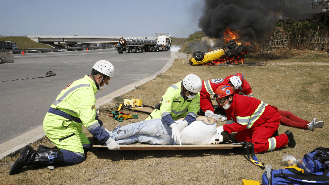 Simulado de acidente e socorro em rodovia de SP. Foto: Divulgação/Ecopistas