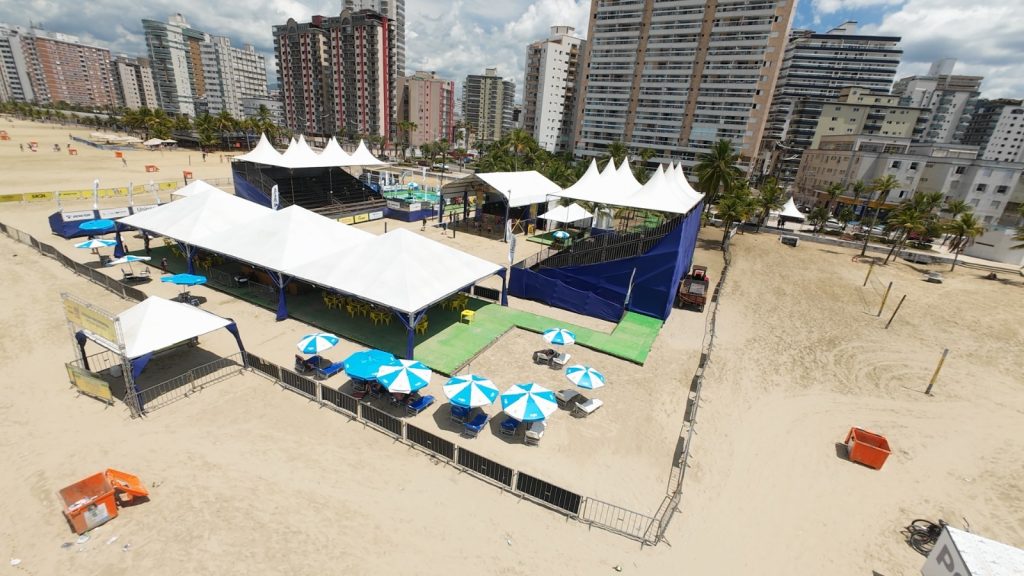 Arena armada na praia da Guilhermina funciona até 1º de fevereiro, das 9h às 19h