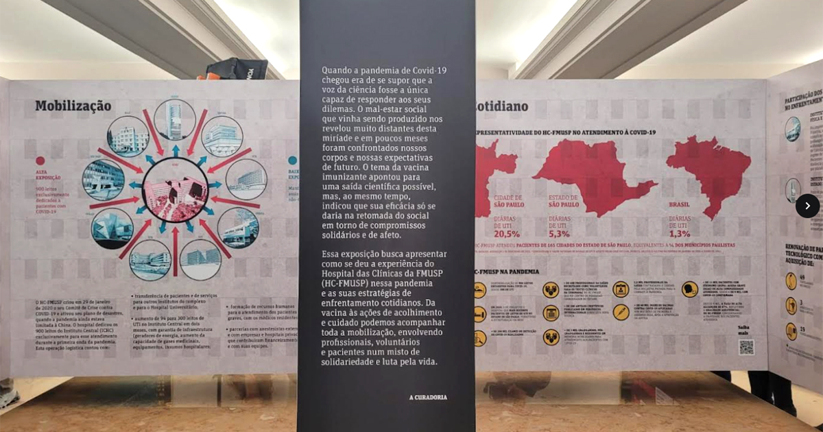 Segundo os curadores, “em seu percurso é possível identificar as questões que versaram sobre temas como o da pobreza e das desigualdades que acabaram por produzir mais adoecimentos e mortes em áreas periféricas da cidade, nos esforços institucionais empreendidos pela Faculdade de Medicina da USP, seu Hospital das Clínicas e instituições parceiras, conseguindo impactar de forma relevante o combate à epidemia, bem como o acolhimento aos doentes num trabalho coletivo dos mais diversos matizes, demonstrando a importância de parcerias e meios de implementação de uma ação de grande porte como se deu no hospital, talvez uma das experiência mais interessantes ocorridas dentro e fora do Brasil. Eles ainda complementam que “ao fim e ao cabo, entende-se que se há algum sentido tratar da relação entre memória e Covid ela deverá ser, sobretudo, de nossa capacidade de construir conhecimentos, argumentos e práticas a partir desse aprendizado da memória”.