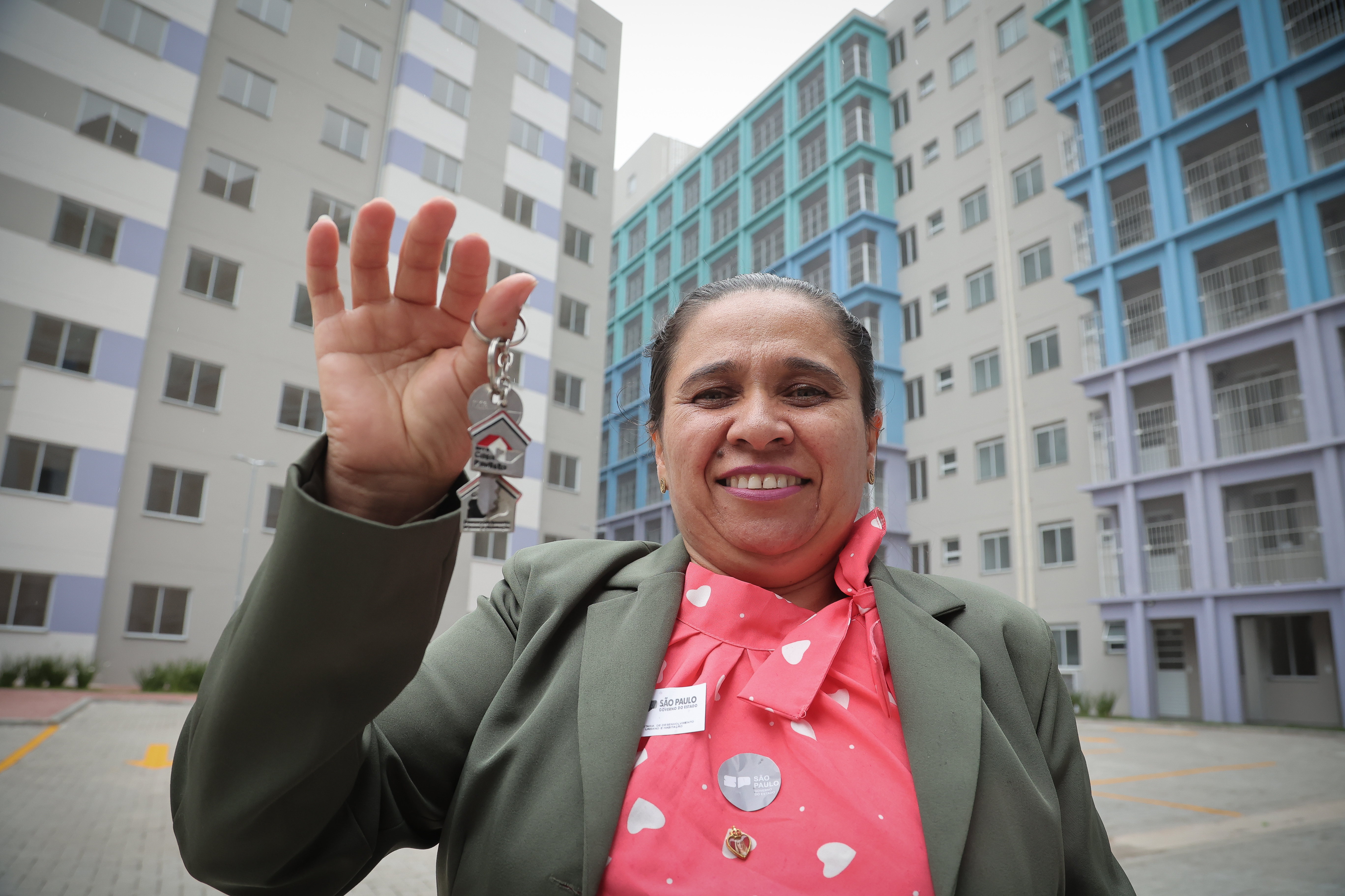 Moradora foi contemplada com apartamento financiado por meio da Carta de Crédito Associativo mo Residencial Fama Personal. Foto: Pablo Jacob/Governo de São Paulo