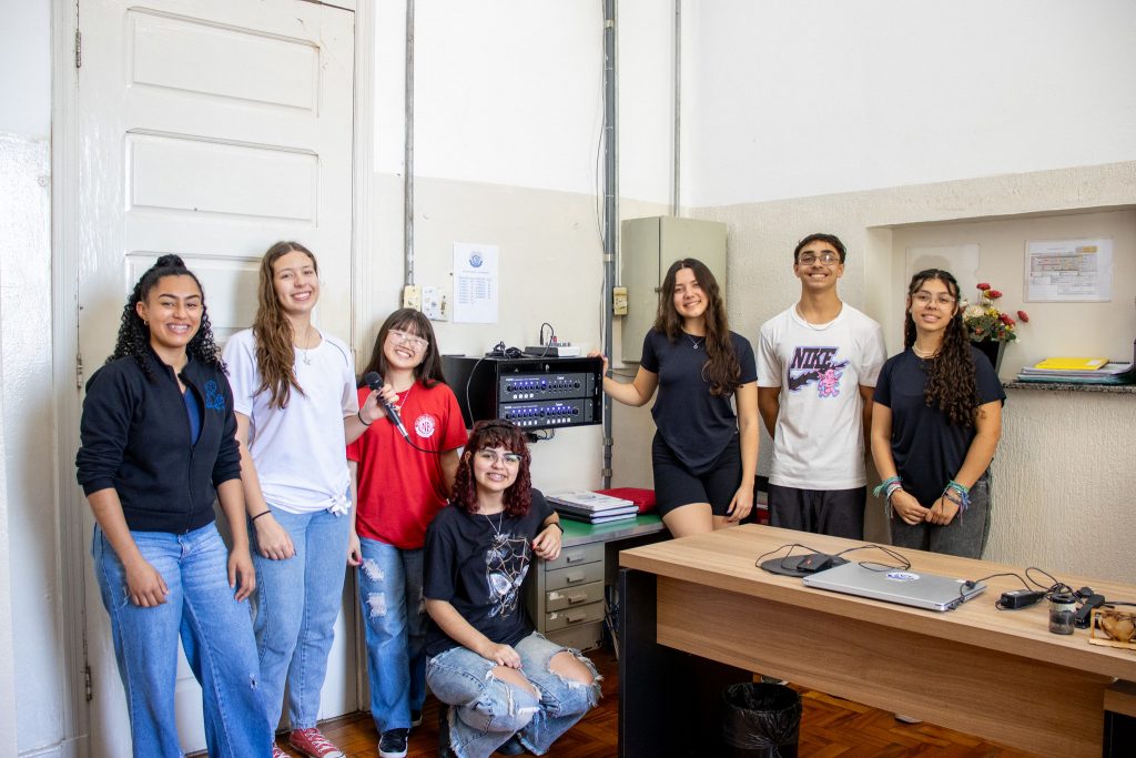 Izabeli de Oliveira Costa, gremista da escola Nhonhô Braga e uma das selecionadas para o intercâmbio do Prontos pro Mundo no primeiro semestre do ano que vem, conta que o novo sistema de som é peça essencial para a preparação para o Saeb deste ano. “É pelo microfone que a gente anuncia, por exemplo, que teremos um aulão de matemática ou de língua portuguesa. Esses avisos sempre acontecem no final de cada aula, para não atrapalhar o trabalho dos professores e o aprendizado dos alunos”, avisa.