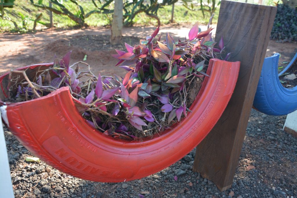 Inicialmente, estão sendo utilizados pneus inutilizáveis, que foram cortados, pintados e transformados em vasos para plantas, além de pedaços de madeira que seriam descartados. Futuramente, os servidores pretendem incorporar o uso de garrafas PET na criação de outros modelos de peças.