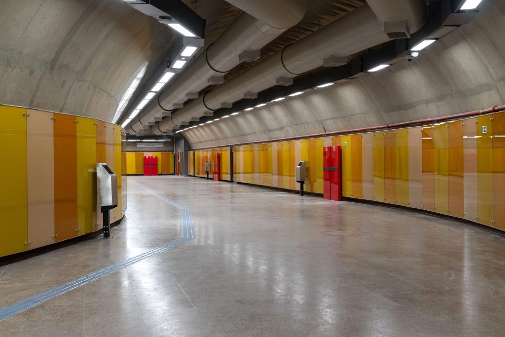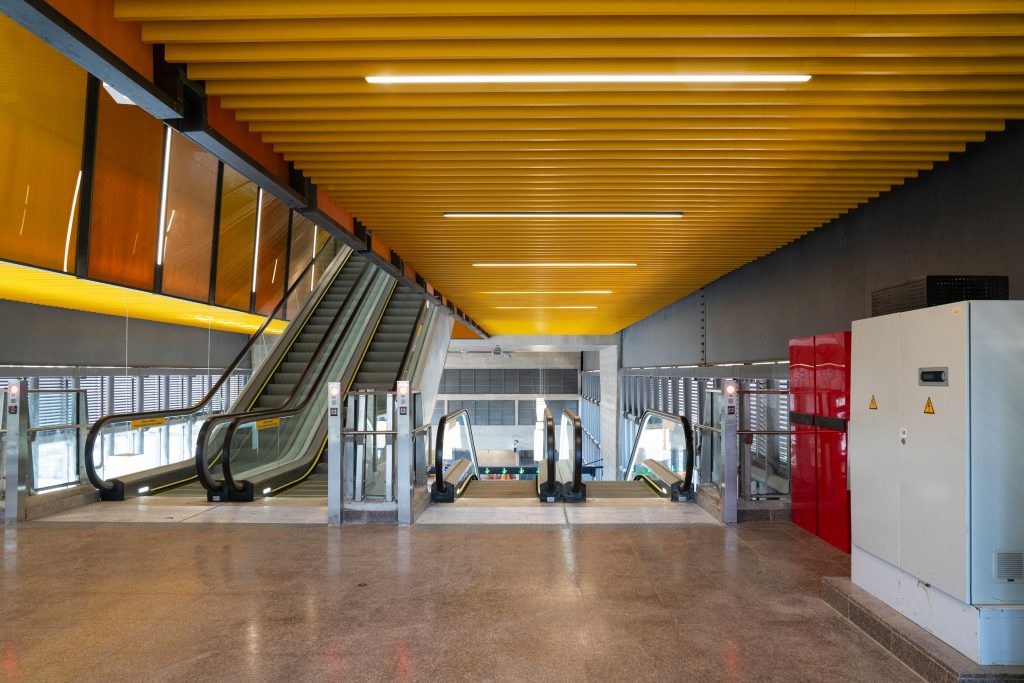 O túnel é o grande diferencial do projeto. Construído sob a Avenida Washington Luís, ele garante um trajeto curto, seguro e acessível entre o monotrilho e o aeroporto, eliminando travessias externas e oferecendo praticidade tanto para passageiros aéreos quanto para trabalhadores do terminal.