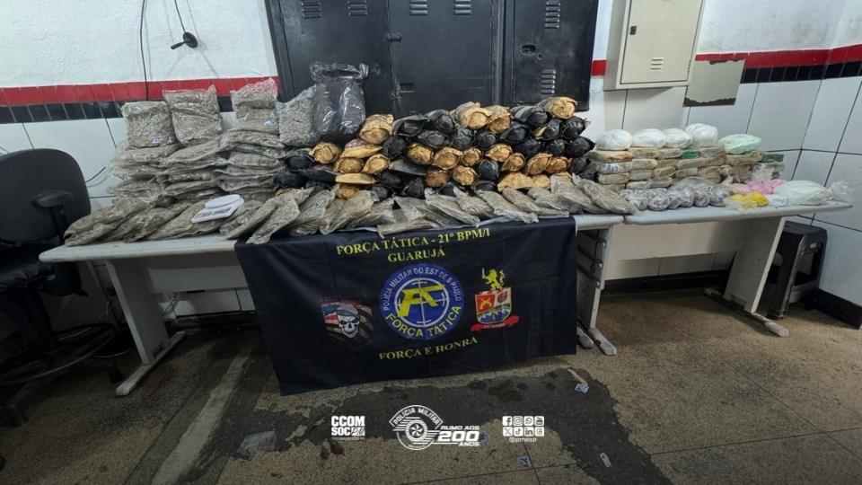 A perícia foi acionada para o local. Os entorpecentes foram apreendidos e, o caso, registrado como tráfico de drogas na Delegacia de Polícia do Guarujá. As investigações prosseguem para identificar e prender os responsáveis pelas drogas.