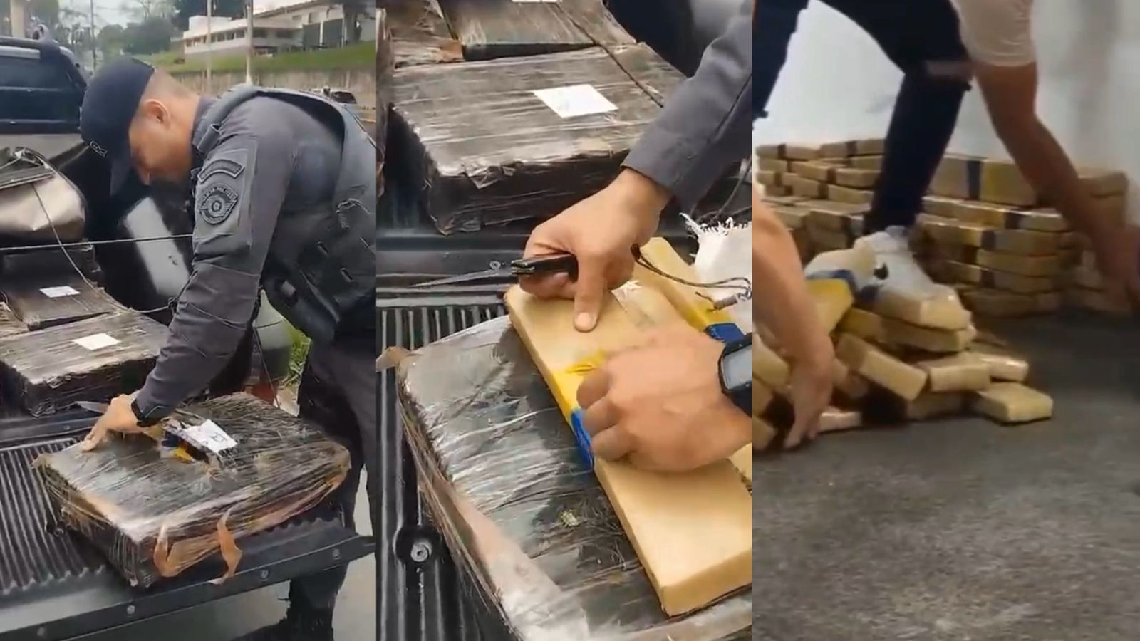 No total, 163 tabletes da droga foram encontrados na caminhonete