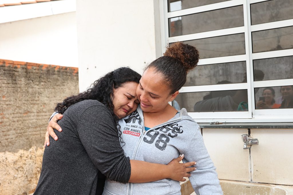 Depois de conhecerem todo o espaço, os sorrisos e as brincadeiras logo foram dando lugar ao choro de emoção e alegria das cinco filhas mulheres de dona Raimunda. “A senhora merece, mãe”, disse Carol enquanto todas abraçavam a mãe limpando as lágrimas.