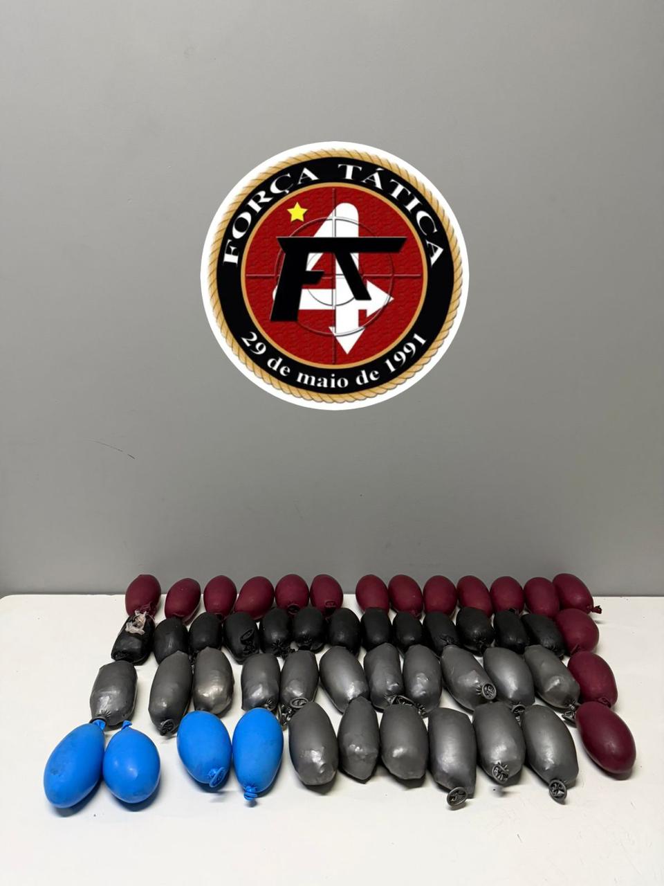 Ele foi abordado e, durante as buscas, a equipe encontrou cerca de 50 porções da droga, embaladas em bexigas, dentro do tanque de combustível da moto.