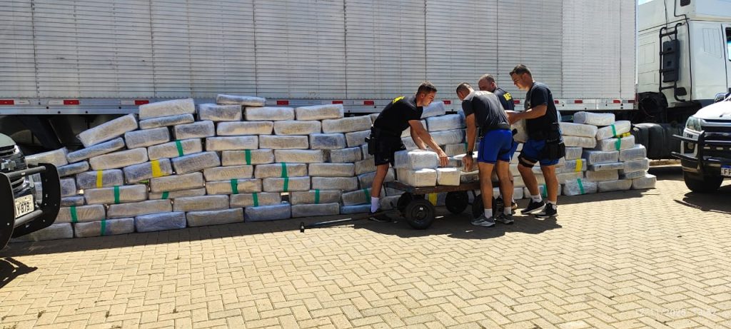 Durante a abordagem, os fardos da droga foram encontrados em um fundo falso do caminhão, localizado na estrutura do baú.