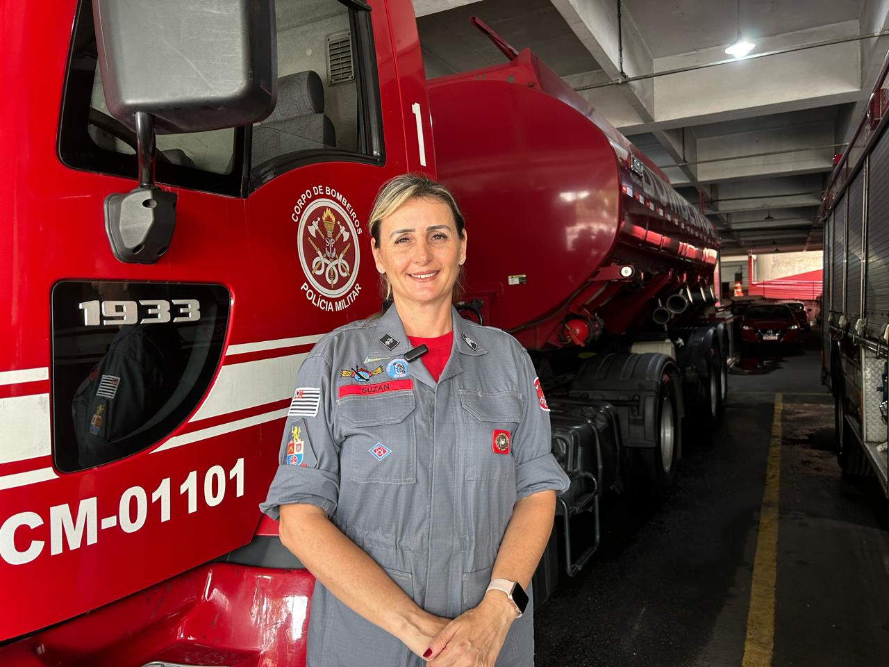 Sargento Jaqueline Suzan entrou para o Corpo de Bombeiros em 1996 aos 18 anos. Hoje, ela é uma das mulheres há mais tempo na corporação