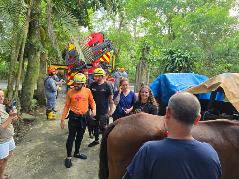Animal estava em cima de uma casa no bairro Caraguava; resgate foi feito com ajuda de guindaste