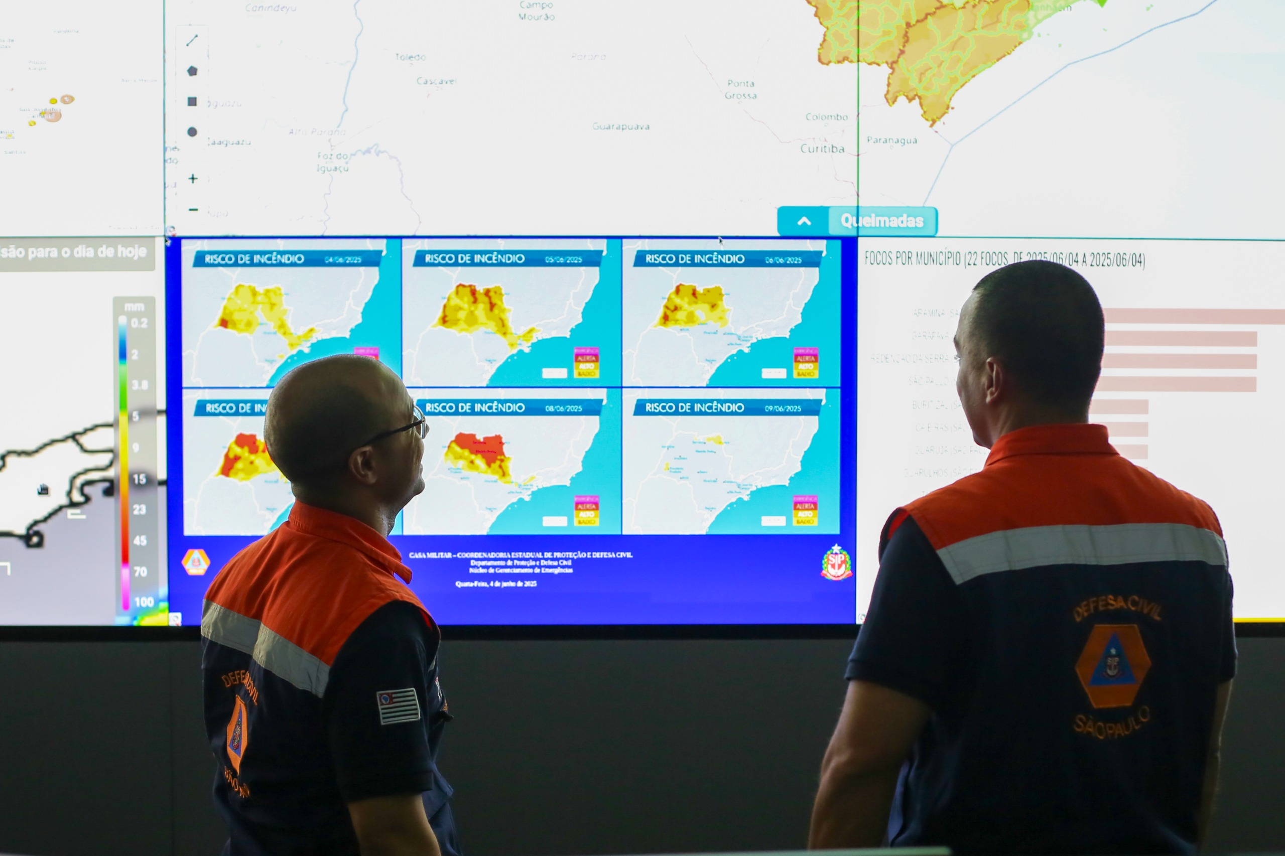 Durante a fase vermelha da Operação SP Sem Fogo, meteorologistas e analistas da Defesa Civil ficarão dedicados exclusivamente para cuidar da análise horária de todas as regiões do estado. Ao final de cada dia, um boletim com informações climatológicas será compartilhado com equipes da defesa civil municipal, gestores de parques florestais e unidades de conservação, Corpo de Bombeiros e das brigadas de incêndio.