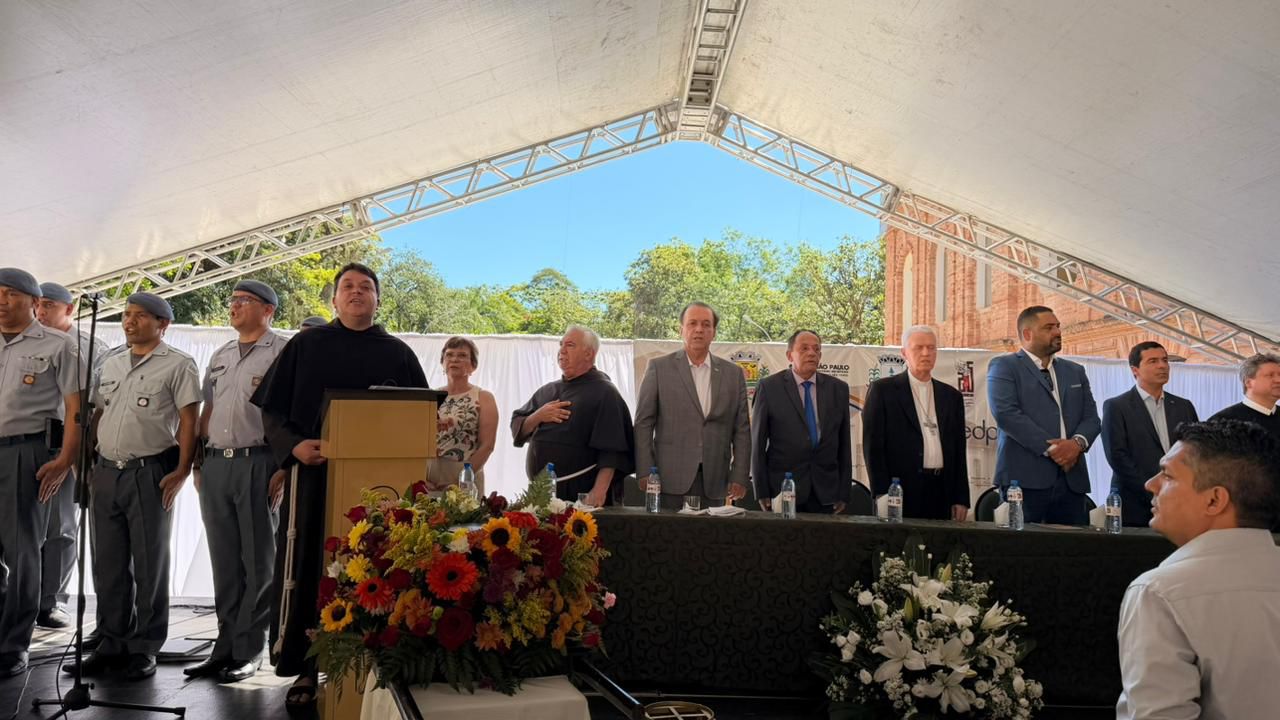 O secretário de Estado da Saúde de São Paulo, Eleuses Paiva, participou, nesta segunda-feira (22), das comemorações pelos 95 anos da Santa Casa de Aparecida, vinculada ao Departamento Regional de Saúde (DRS) de Taubaté. Durante o evento, que reuniu autoridades locais e representantes religiosos, foi realizado o descerramento da placa “Aqui Tem Tabela SUS Paulista”, em reconhecimento à adesão da instituição ao programa pioneiro do Governo de São Paulo.