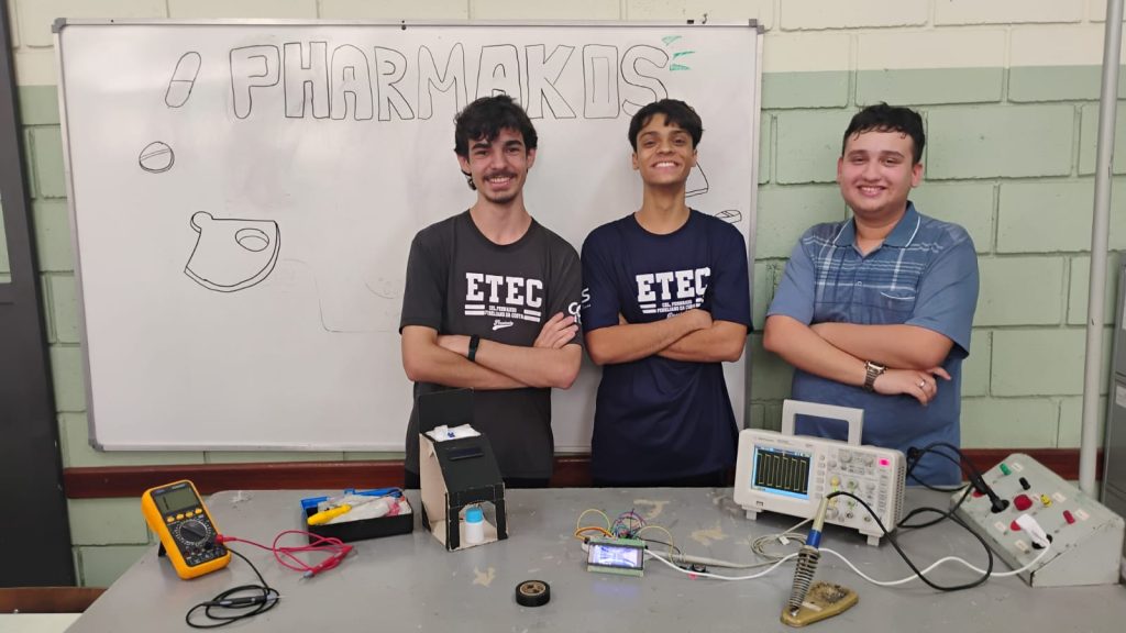 Batizado de “Pharmakos”, o trabalho de conclusão de curso (TCC) dos estudantes Antônio Carlos Furlam Filho, Kauã Benjamin Trobim Silva e Arthur Thomas Zanin da Silva, de Piracicaba, pretende resolver o problema de gestão de medicamentos de idosos e portadores de doenças crônicas que precisam administrar sozinhos o tratamento. O equipamento criado pelos alunos utiliza tecnologia embarcada para separar as quantidades de comprimidos nos horários pré-programados no sistema de memória. Na hora certa, o medicamento é dispensado e um sinal sonoro alerta o paciente. O trabalho foi orientado pelos professores Marcos Aníbal da Cunha e Luís Henrique Bernardo.