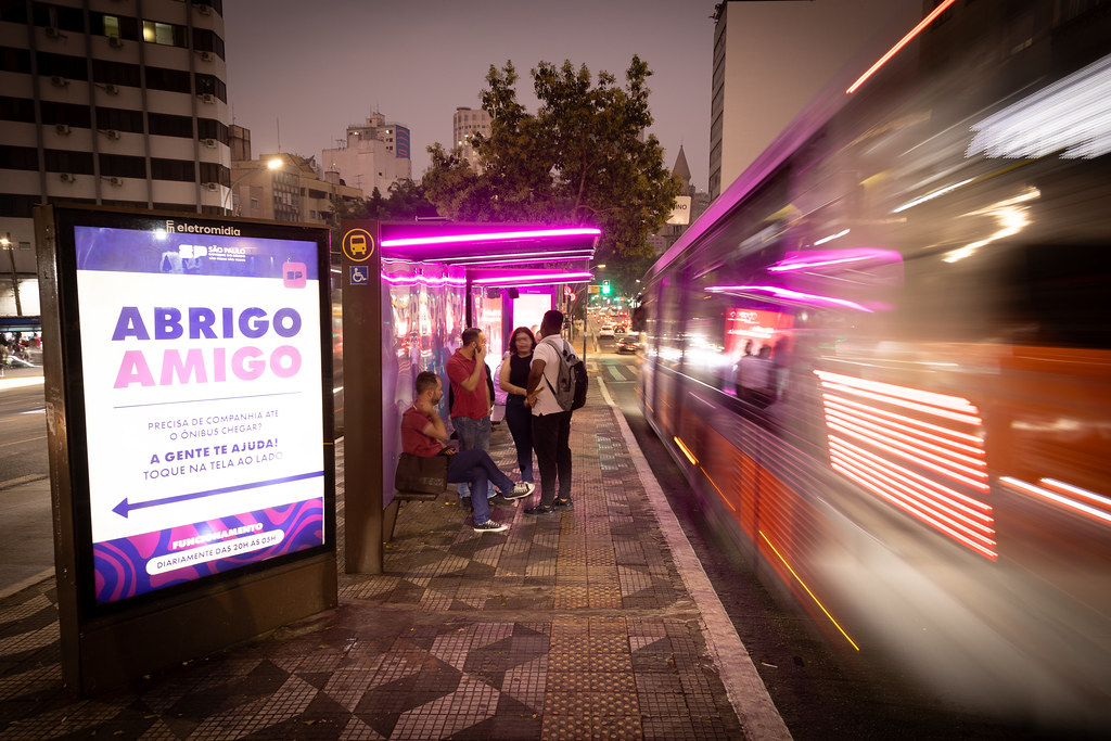 Já o Abrigo Amigo oferece companhia a mulheres que estão sozinhas à espera do transporte público na capital paulista. A iniciativa disponibiliza acompanhantes virtuais em tempo real para mulheres à espera de ônibus em pontos estratégicos da capital paulista. Os locais foram mapeados a partir das regiões classificadas como mais sensíveis para o público feminino.