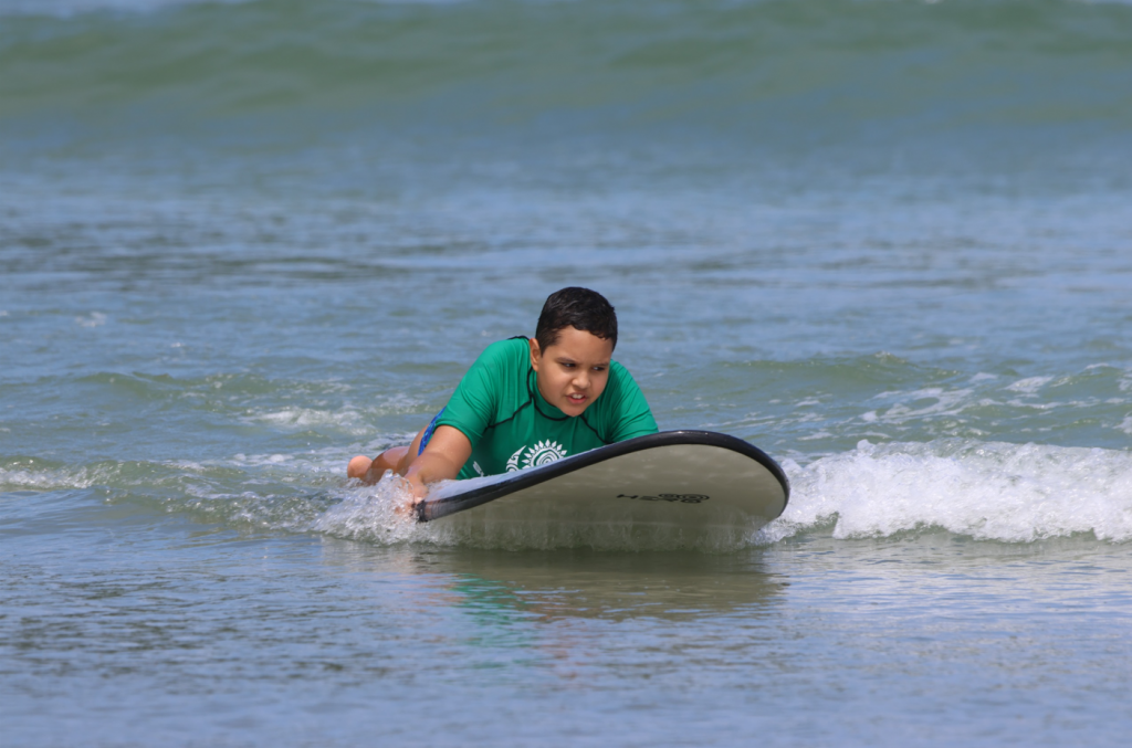 O programa Surf Para Todos é democrático, abrange todas as idades e todas as classes sociais. Mas não é só isso, a iniciativa também é inclusiva, com professores e equipamentos capacitados para receberem pessoas com deficiência.