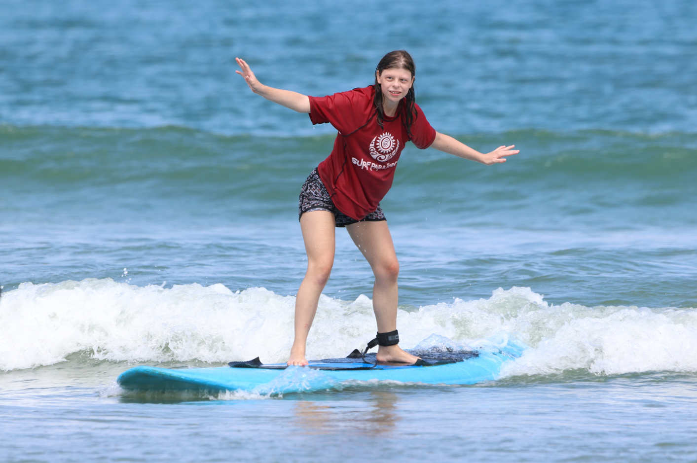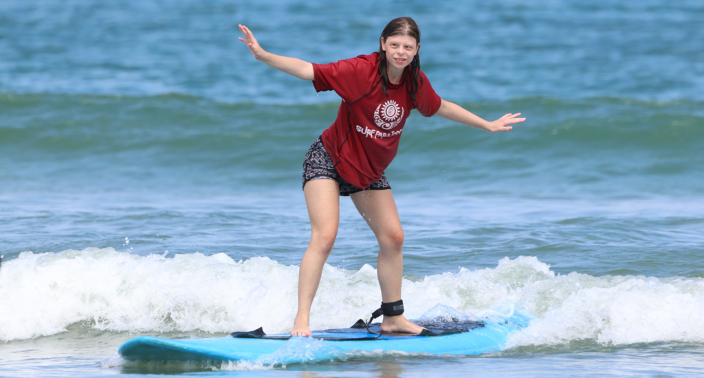 Enquanto Isac não media sorrisos a cada onda, Ana Julia, 17 anos, era pura animação. Com Síndrome de Williams, condição genética rara, Ana esbanjou desenvoltura na aula ao lado da sua mãe Juliana Marra Mazuchi, 42 anos, e as duas pretendem voltar outras vezes para dar continuidade nas aulas.