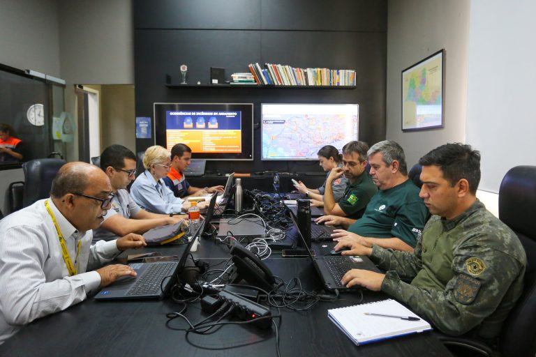 20 aeronaves atuam simultaneamente em diversas regiões para apagar as chamas; governador Tarcísio de Freitas acompanhou os trabalhos no Gabinete de Crise